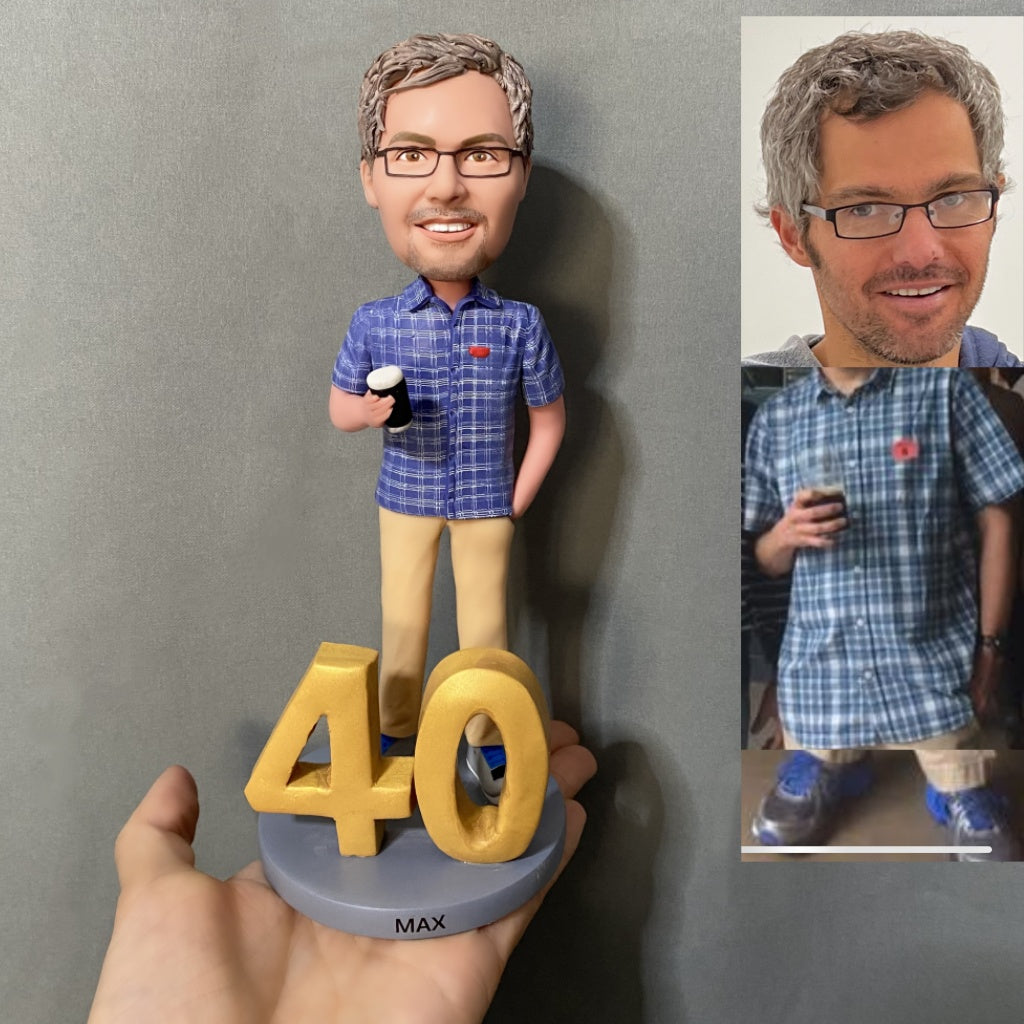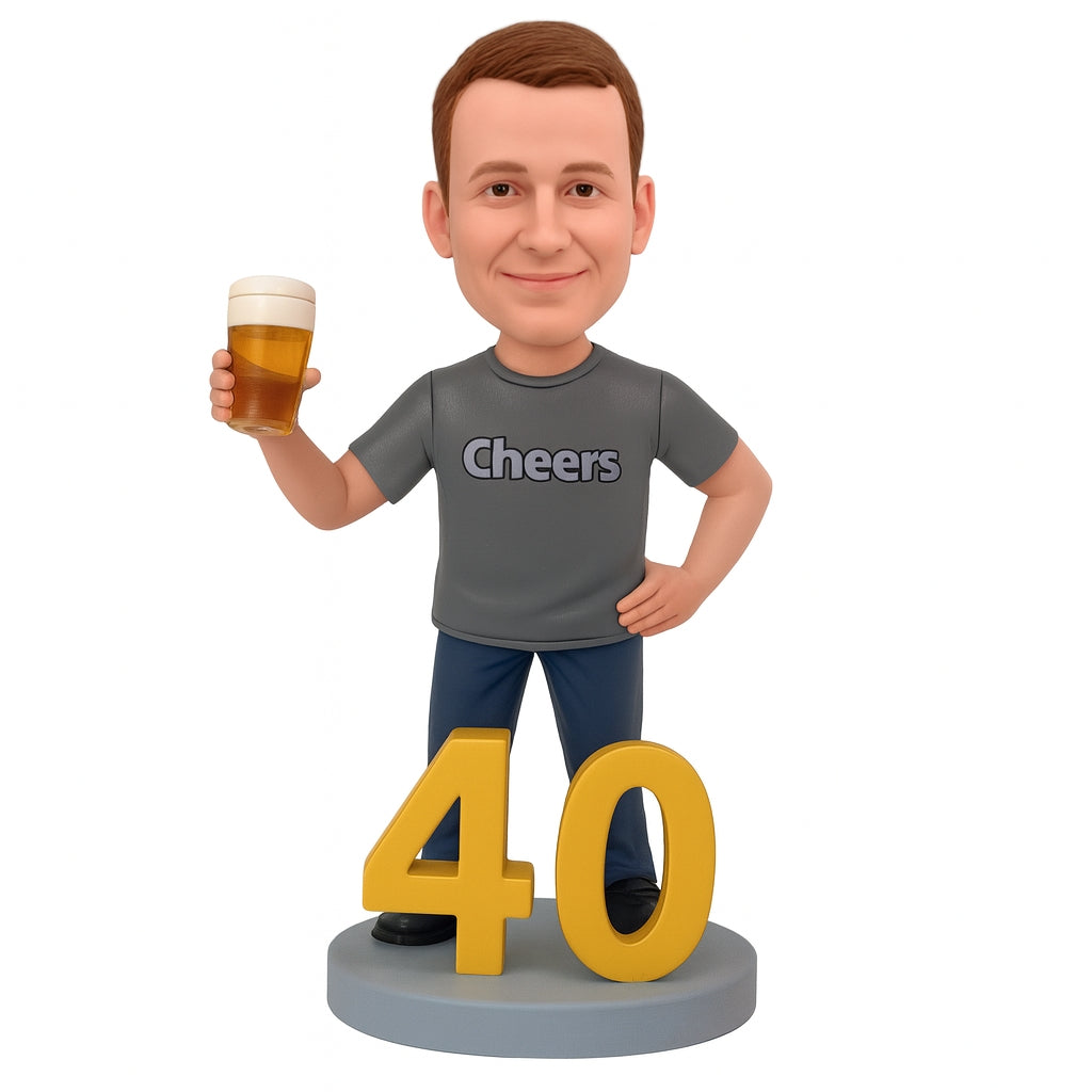 40th Gifts for Men- Custom Bobbleheads - Cheers to 40th Birthday