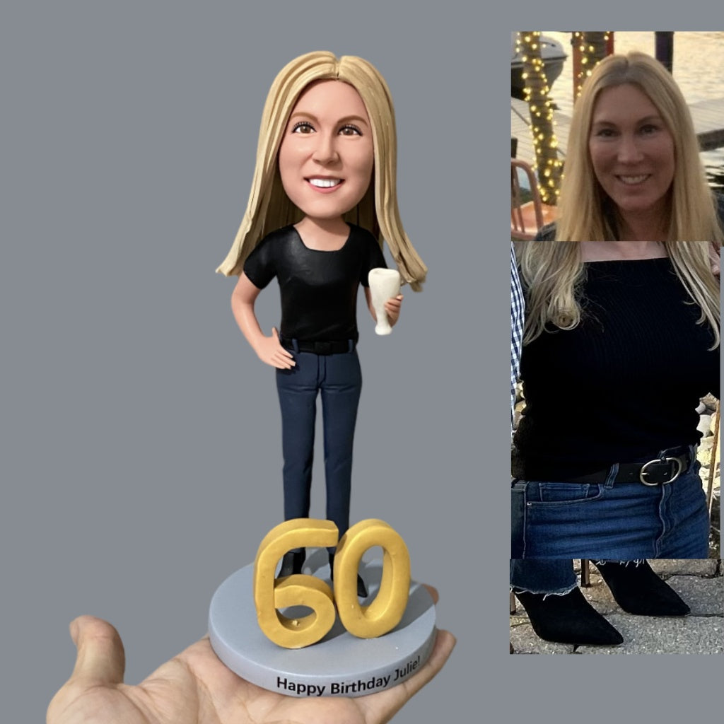 Gifts for 60th Birthday Woman - Custom Bobbleheads - The Lady with the Birthday Cake