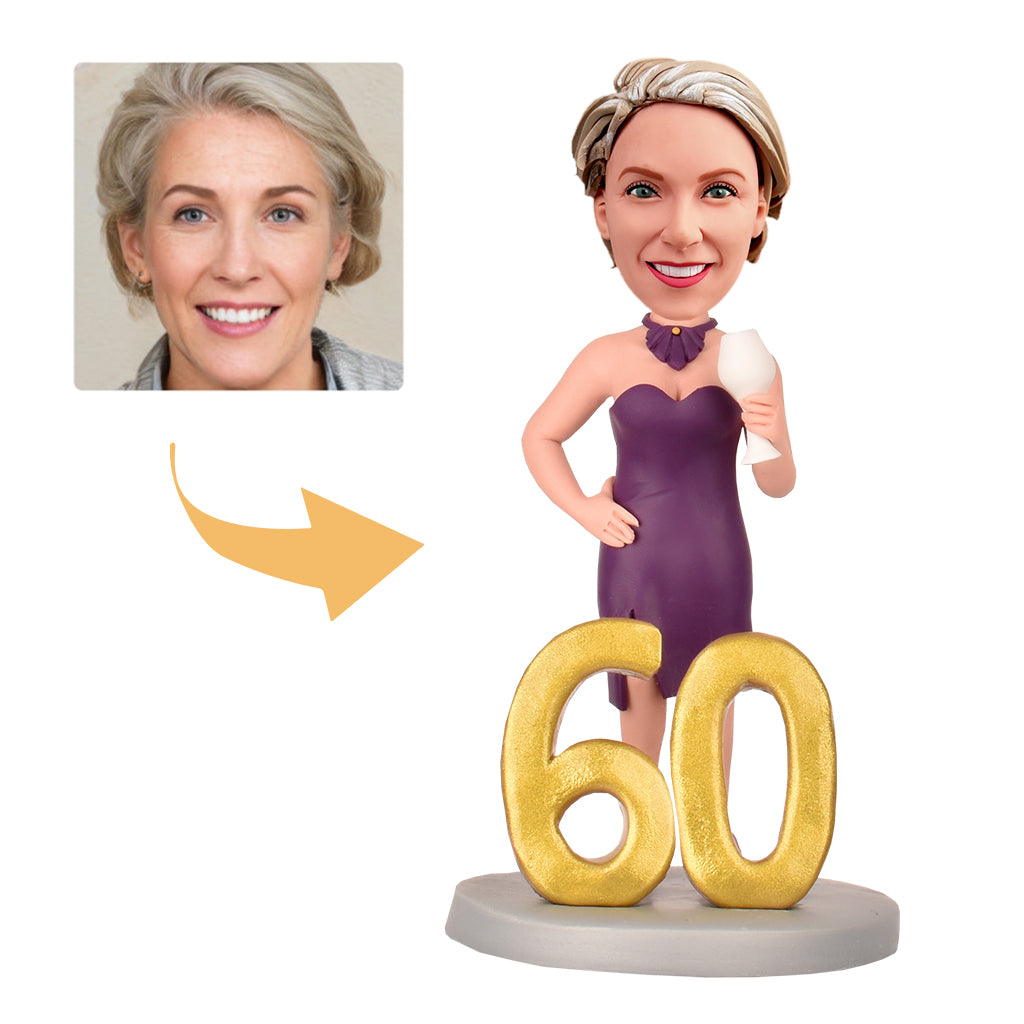 Gifts for 60th Birthday Woman - Custom Bobbleheads - The Lady in the Purple Dress