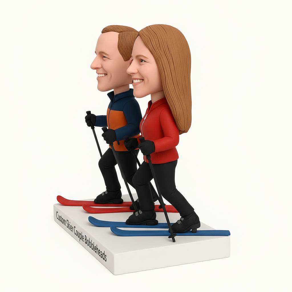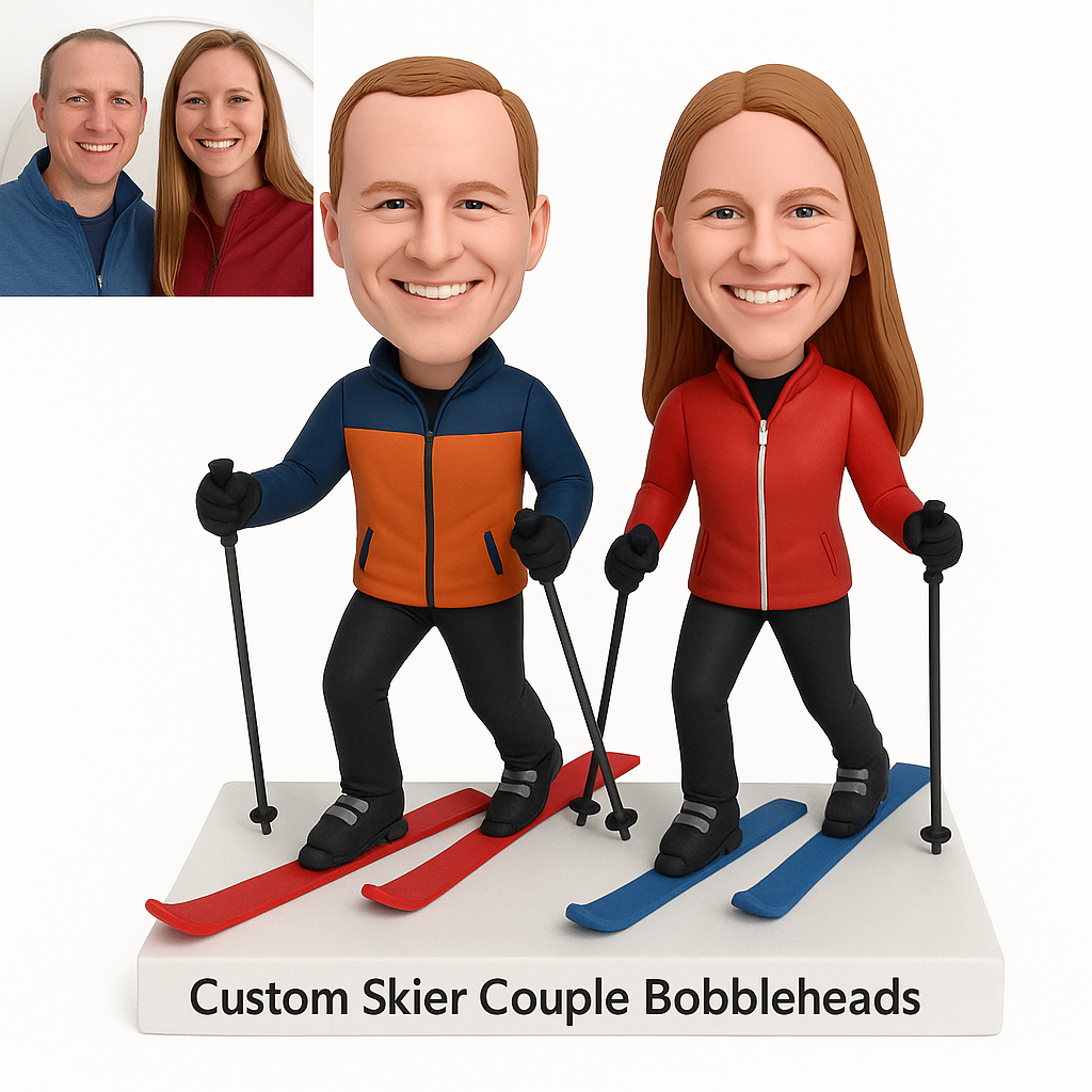 Custom Couple Skiers Bobblehead – Outfit Customization Available